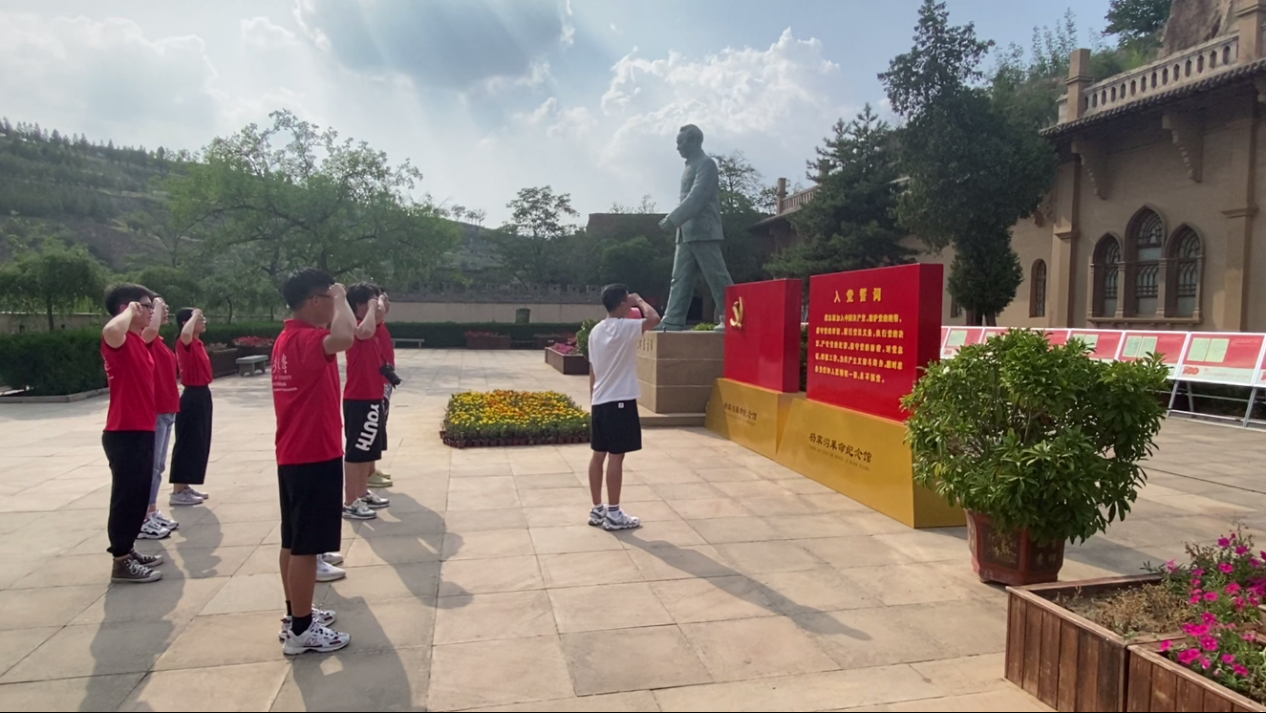 下午实践队一行来到杨家沟革命纪念馆,参观“十二月会议旧址”与毛泽东、周恩来旧居等展室,在“新中国的曙光从这里升起”的醒目标志下,回望艰苦卓绝的革命岁月和转战陕北的艰辛历程。党旗猎猎,在毛泽东同志的雕塑前,实践队员重温入党誓词,坚定入党初心,为实现中华民族复兴伟业贡献力量,让青春之花绽放在祖国和人民最需要的地方。