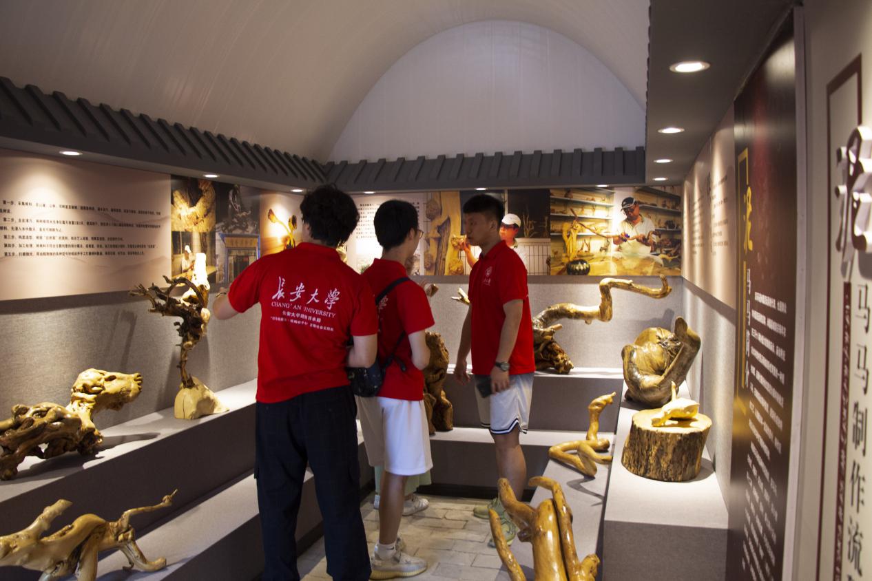 实践队参观罗氏根艺展室中的十二生肖根雕