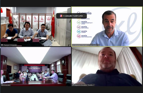 9月17日下午,环球ug登录网站与法国拉罗谢尔高等商学院召开了中外合作办学项目视频对接会。法国拉罗谢尔高等商学院国际事务副校长Alejandro ESCUDE ROYERRO、商学院院长Chantelot教授,环球ug登录网站国际处处长蒋在文、经管学院院长杜强等参加了视频会议。