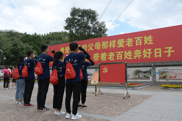 实践队还组织队员观看了《延安保育院》舞台剧,在各个革命旧址重温入党誓词,举行佩戴党员徽章仪式,真正在延安这片红色圣地汲取精神力量。