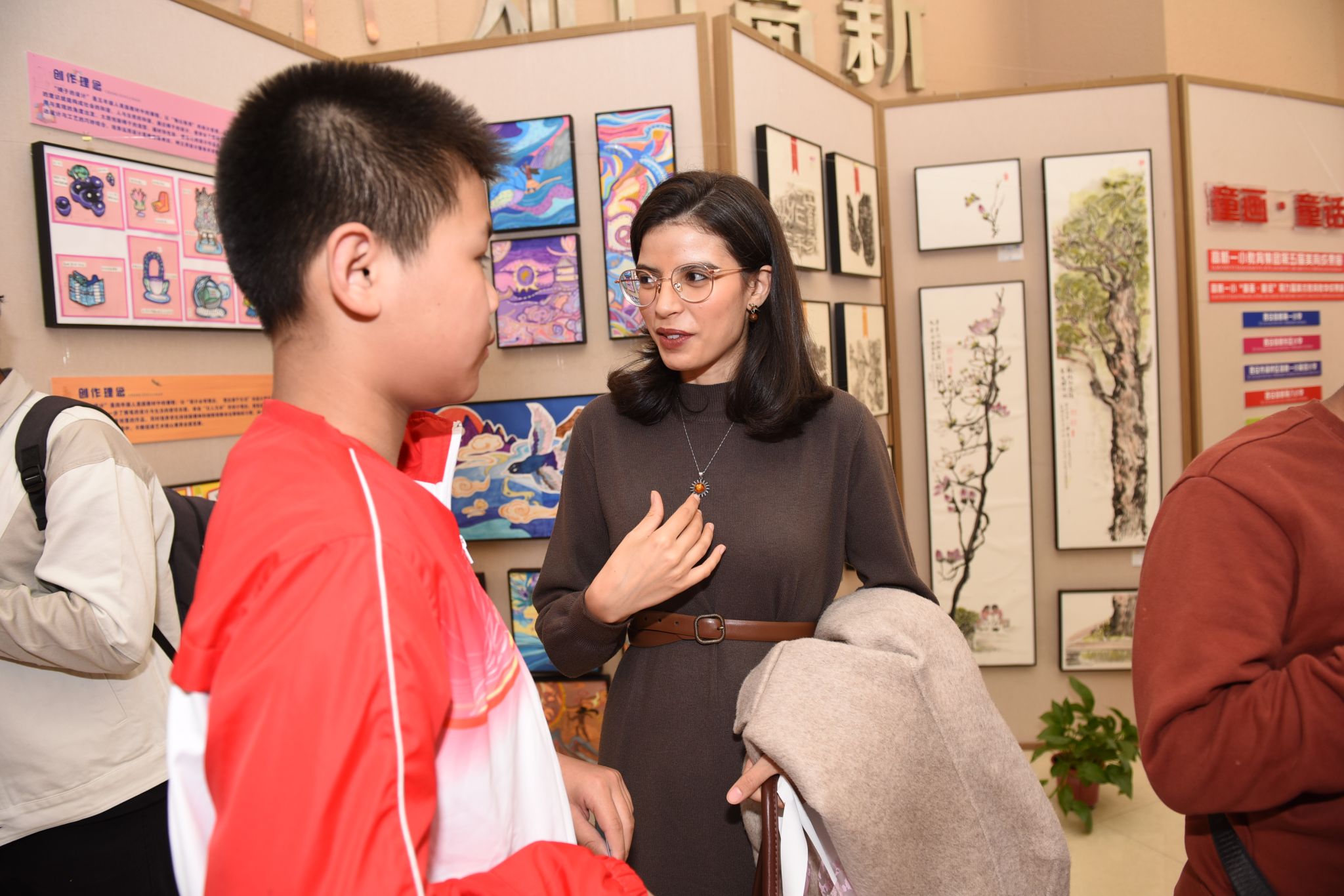 讲座结束后,环球ug登录网站二十余位国际学生在一小同学们的引领下,先后参观走访一小本部美育成果展示大厅、梓园校区智创中心及图书馆、德育大厅等,感受中国的校园文化、教学特色、师生特长。