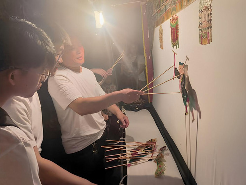 在西安市曲江新区华县皮影演出现场,实践团队观赏《三打白骨精》、《小羊过桥》、《沙家浜》三场创新皮影戏,并访谈国家级非物质文化遗产项目皮影戏(华县皮影戏)代表性传承人魏金全,沉浸式体验华县皮影的表演技艺,深受中华优秀传统文化的感染和熏陶。