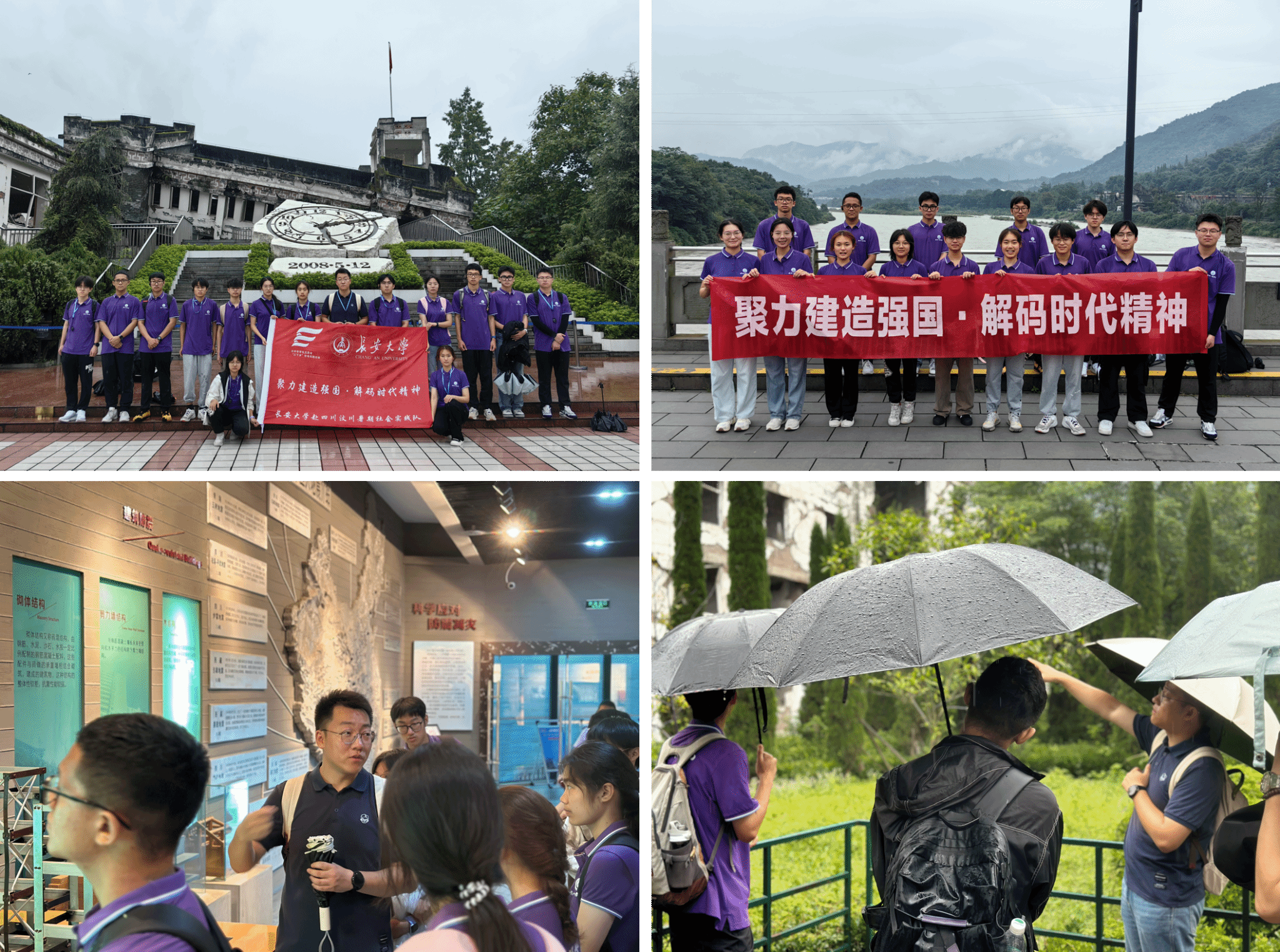 为深入学习贯彻习近平总书记关于青年工作的重要论述,将专业教育融入时代精神,引导土木学子在强国建设中彰显担当,7月11日至17日,环球ug登录网站赴四川汶川“聚力建造强国·解码时代精神”暑期社会实践队,先后走进汶川地震震中遗址、都江堰水利工程、中建五局三公司、四川大学等地开展专业实践调研和时代精神学习,探索“专业实践+课程思政”实践育人新思路。