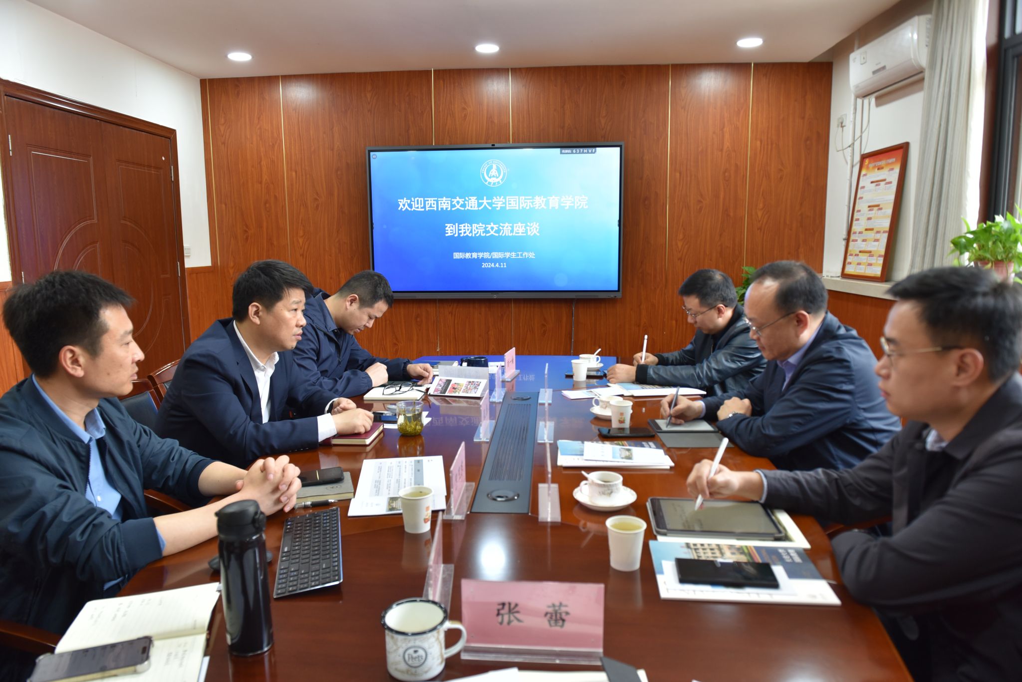 4月11日,西南交通大学国际合作与交流处处长/国际教育学院院长马磊、副处长/副院长李海等一行3人到环球ug登录网站国际教育学院调研交流。国际教育学院院长张伟、副院长吕卫东、孙林等人员陪同调研并开展交流座谈,座谈会由张伟主持。