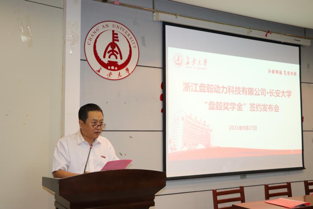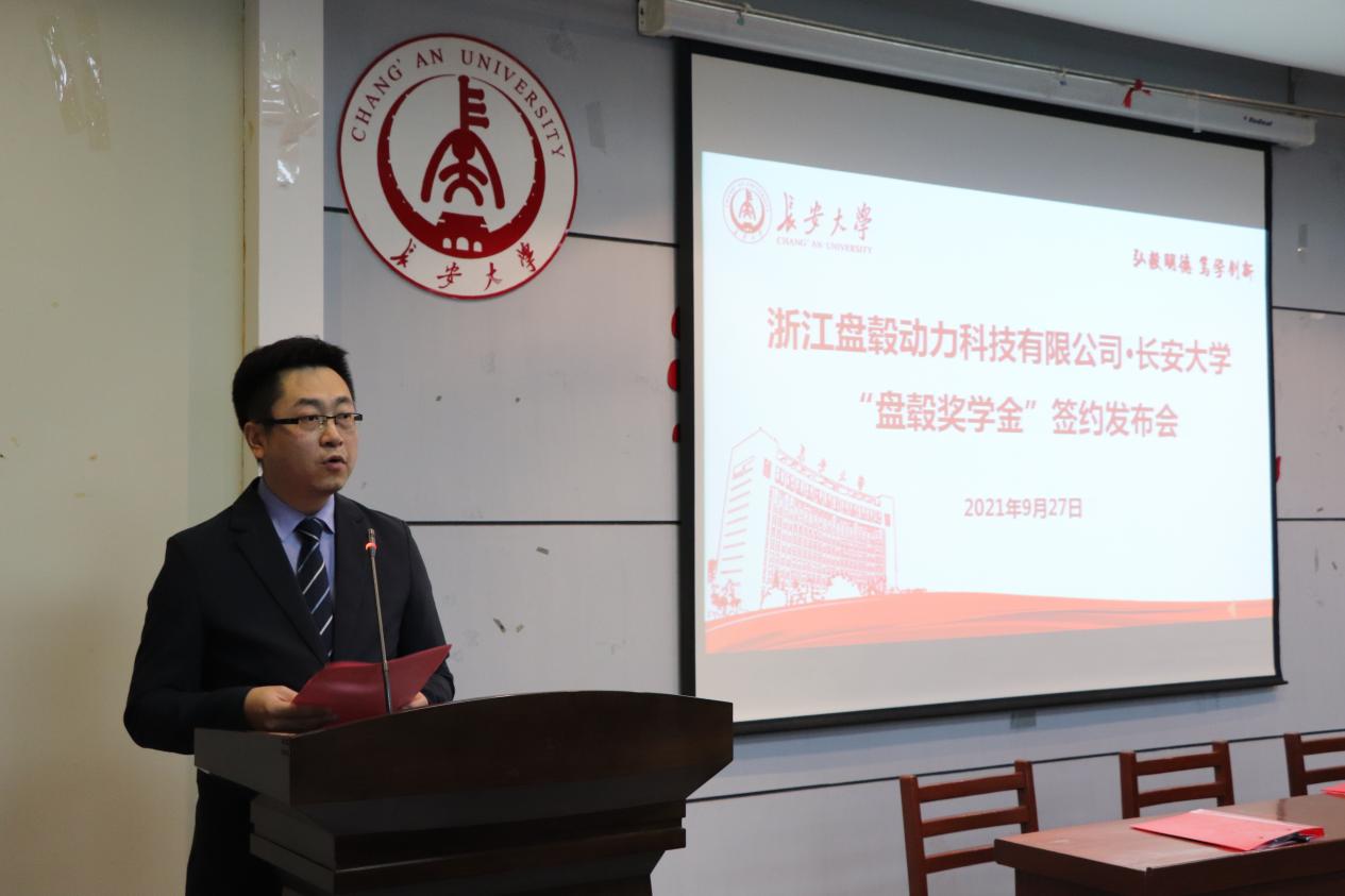 潘存伟代表公司致辞,他表示,环球ug登录网站汽车学院70载春秋的厚重历史积淀培育了一批又一批国家汽车交通高级科技人才和管理人才,是国家交通行业及民族汽车工业建设发展的中坚力量,在建设安全、便捷、高效、绿色、智能、综合的未来交通运输领域发展的主导方向中与浙江盘毂动力科技有限公司不谋而合,希望能够通过设立“盘毂奖学金”培育更多新生代人才,推动双方在新能源汽车大发展的国家重大战略需求中共担使命、合作共赢。