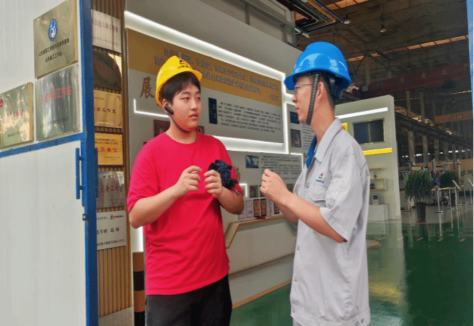 走进车间一线,感受智能制造。队员们参观了挖掘机智能制造车间,感受到了现代工业中智能制造的强大力量。车间自动化和智能化程度超过95%,其中配备的先进自动焊接和打磨机器人,将工作效率提升了50%以上,在节省人力成本的同时降低了事故发生的概率。车间还配备有综合监测系统,各类机器实时数据都一目了然,高智能化的现代车间配置让队员们大开眼界。