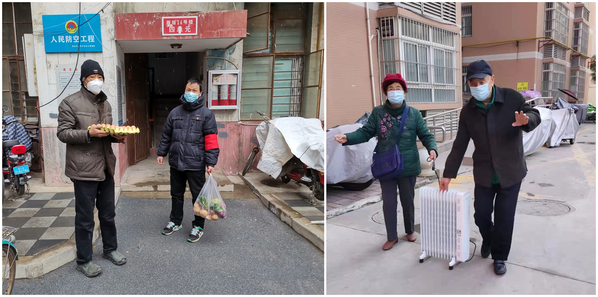 为行动不便老人送货上门、老同志为医护人员送取暖器