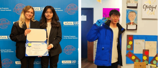 姚雨辰被选派参加联合国驻日内瓦总部实践实习交流项目,参访了联合国总部、国际红十字会、世界卫生组织、世界知识产权组织、联合国水资源组织等十余个联合国机构;模拟学习了外交磋商介绍、联合国贸易和发展会议。王宇杭被选派参加国际志愿者实习实践项目,前往纽约皇后作为Hour Children Pantry的志愿者,主要负责社区捐赠、访问登记等工作,工作之余,他与寄宿家庭的朋友外出交流,感受当地的文化氛围,探索城市的文明溯源。