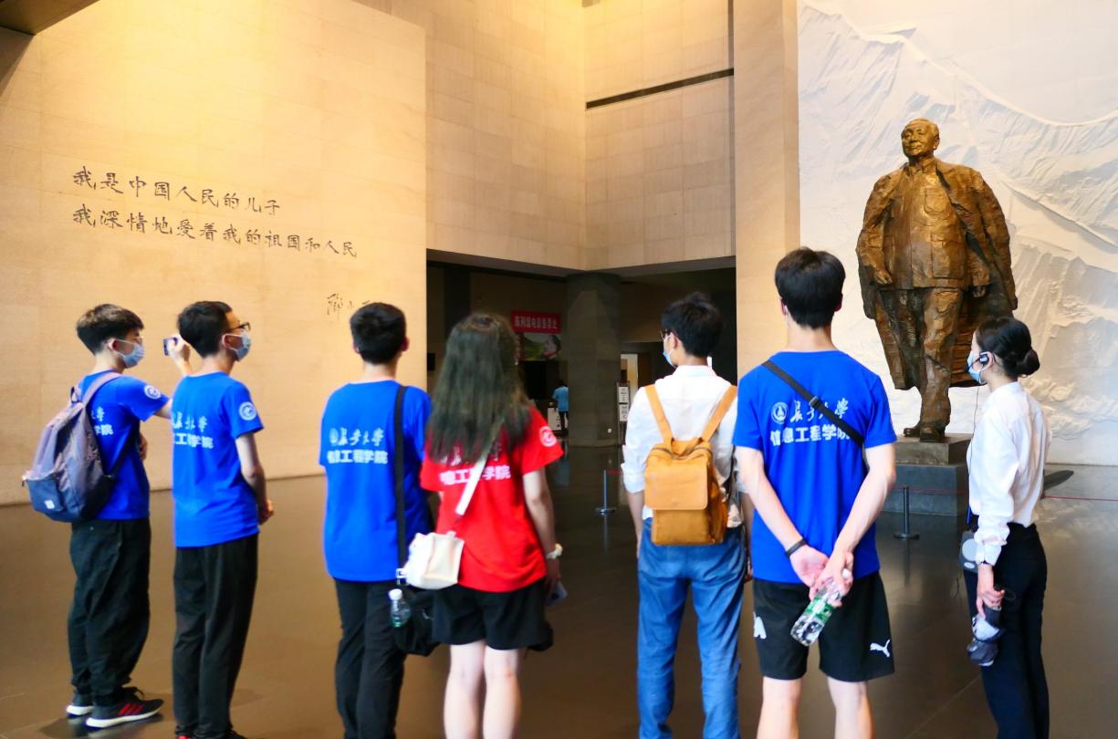 7月15日,实践队前往广安市邓小平故居,追忆建党百年的峥嵘岁月,研学伟人事迹,重拾伟人历史。实践队师生面对邓小平铜像,肃立鞠躬,对中国改革开放总设计师表示崇高敬意和缅怀之情。随后,队伍依次参观陈列馆、缅怀馆、邓小平故居,回顾邓小平同志在中国革命、现代化建设和改革开放三大历程中建立的丰功伟绩,重点学习他“三落三起”的传奇一生。