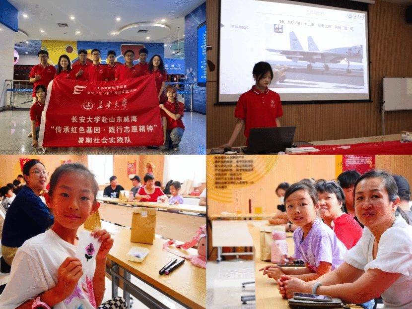探索科技奥秘,点燃创新梦想。7月15日上午,实践队到威海市科技馆参观,与孩子们进行互动交流。下午,实践队前往新城社区开展红色科技小讲堂活动。队员龙旋以中日甲午战争为切入点,通过生动的讲解,介绍了我国现有的航空母舰及海军建设取得的成就。她总结道,科技有了红色才能为国而红,红色有了科技才能为国而强。