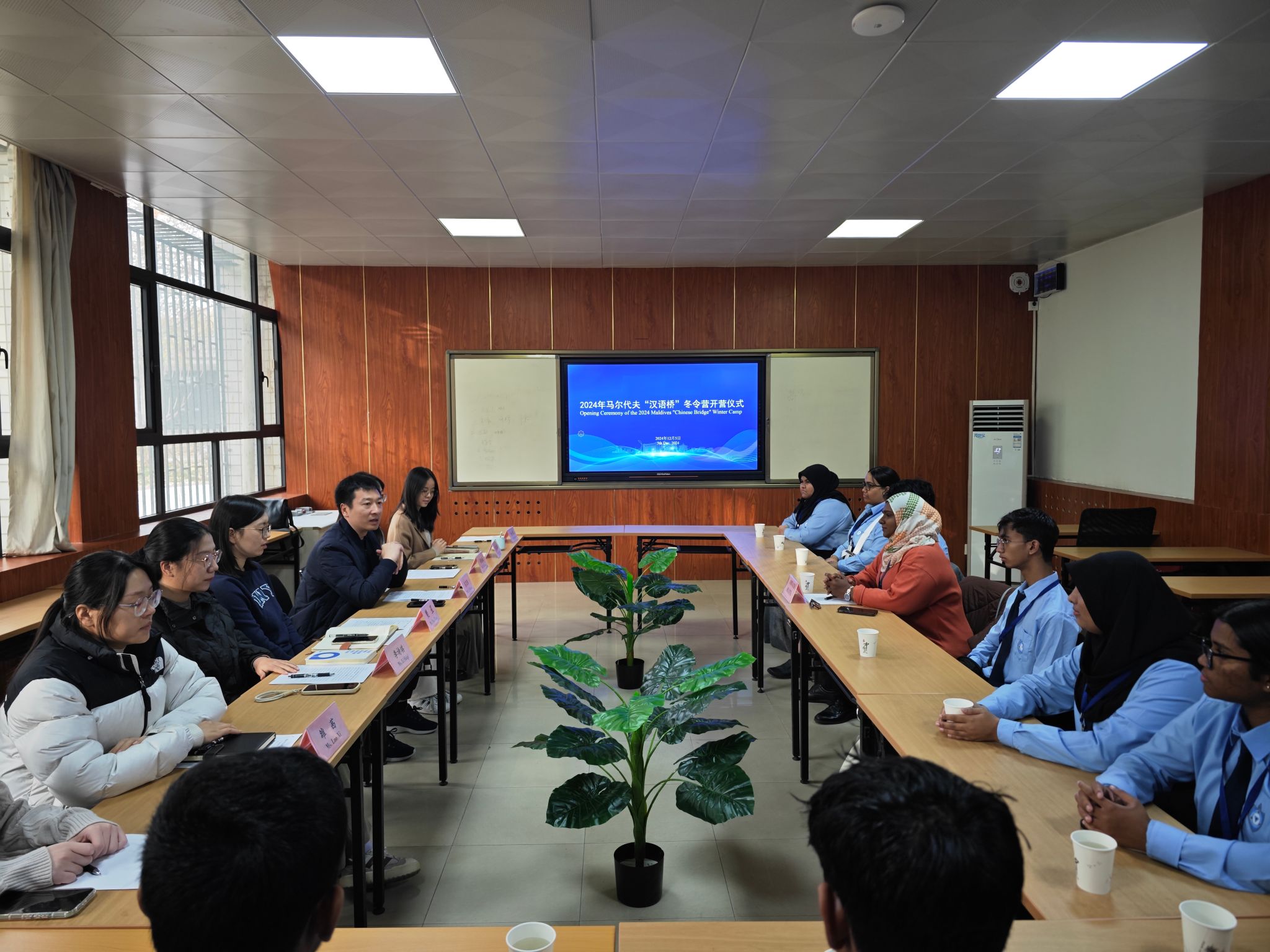 12月5日,由环球ug登录网站国际教育学院承办的“马尔代夫‘汉语桥’冬令营”开营仪式举行。该项目主要面向马尔代夫中文及中国文化爱好者,旨在增进马尔代夫学生对中国语言与文化的了解,为两国友好关系发展搭建桥梁,此次冬令营学员均来自马尔代夫维拉国际高中。环球ug登录网站国际教育学院副院长吕卫东出席开营仪式并致辞。马尔代夫维拉国际高中教师代表AMINATH SHAFFA、环球ug登录网站国际教育学院教师代表及冬令营全体学员参加开营仪式。