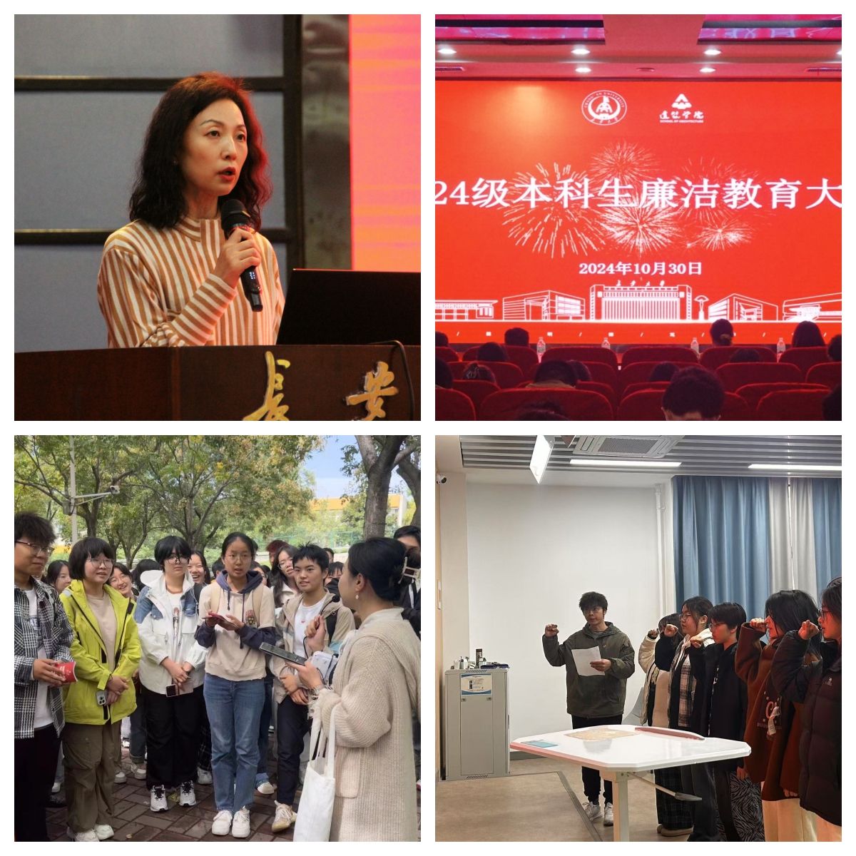 为全面推进新时代廉洁文化建设,夯实大学生清正廉洁思想根基,建筑学院根据《中共环球ug登录网站委员会关于加强新时代廉洁文化建设的实施意见》和《环球ug登录网站2024—2025学年新生教育工程实施方案》有关要求,紧紧围绕落实“立德树人”根本任务,从思想引廉、实践促廉、文化育廉“三条线”,到融入思政元素、融入日常管理、融入实践活动、融入文化宣传“四融入”,面向2024级本科生,积极开展廉洁文化教育。