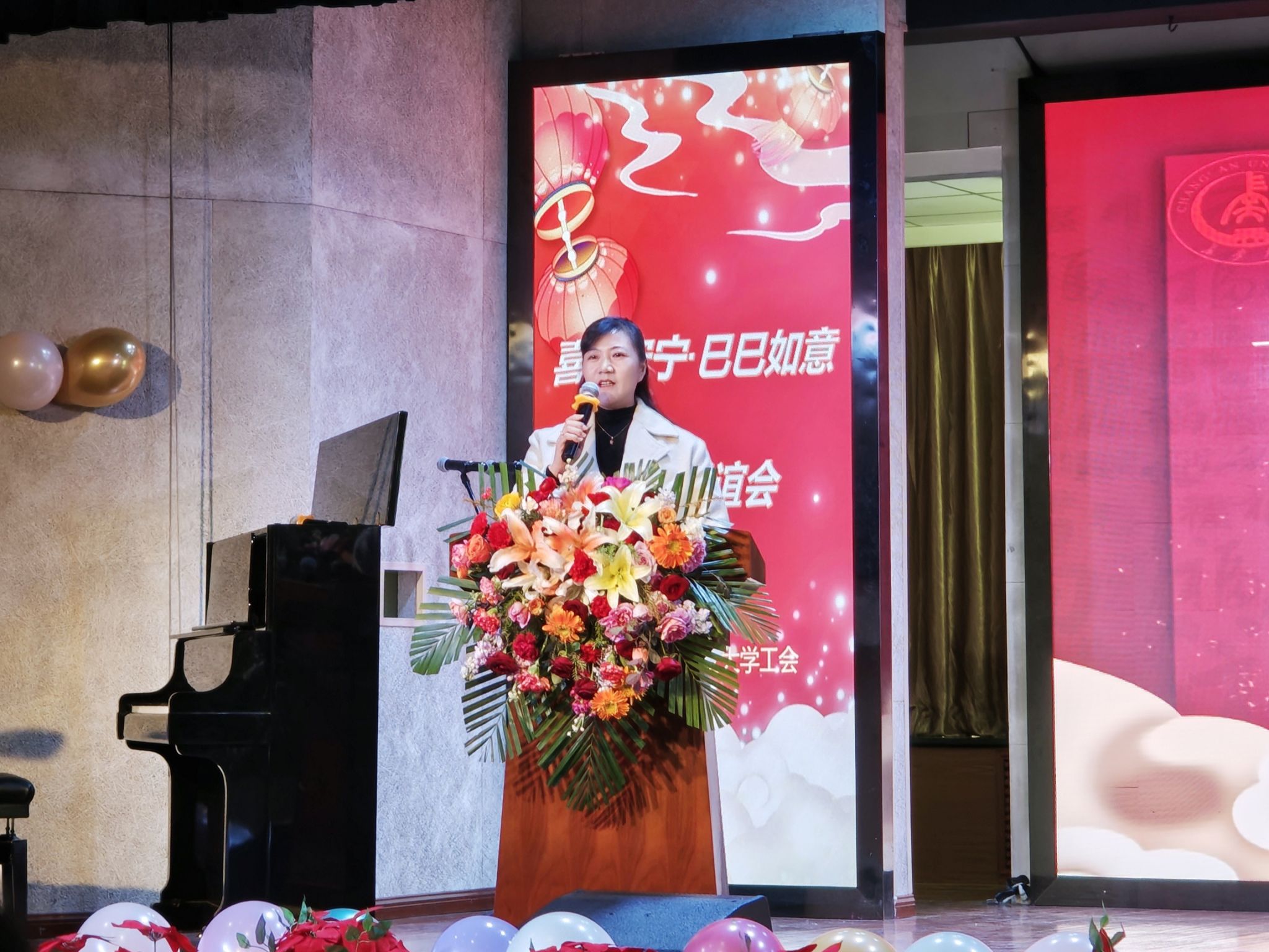 马艳梅代表校工会向到场的领导和嘉宾表示热烈欢迎,并向筹备参与本次联谊会的所有人员表示衷心的感谢。她表示,此次联谊会不仅是才艺的交融,更是大家团结精神的凝聚。也期待未来各协会携手共进,为校园文化生活增添更多的活力和色彩,让老师们以更加饱满的精神状态投入工作,为学校的高质量发展贡献力量。