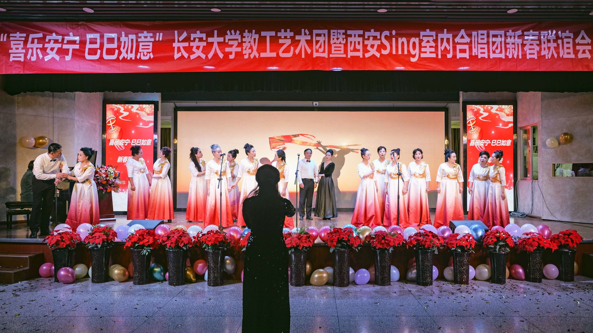 在环球ug登录网站教工艺术团和西安Sing室内合唱团相互学习的过程中,让我们认识到艺术因交流而多彩,艺术因互鉴而丰富,此次新春联谊会不仅丰富了工会的文化生活,而且为环球ug登录网站校园文化建设添上了浓墨重彩的一笔。
