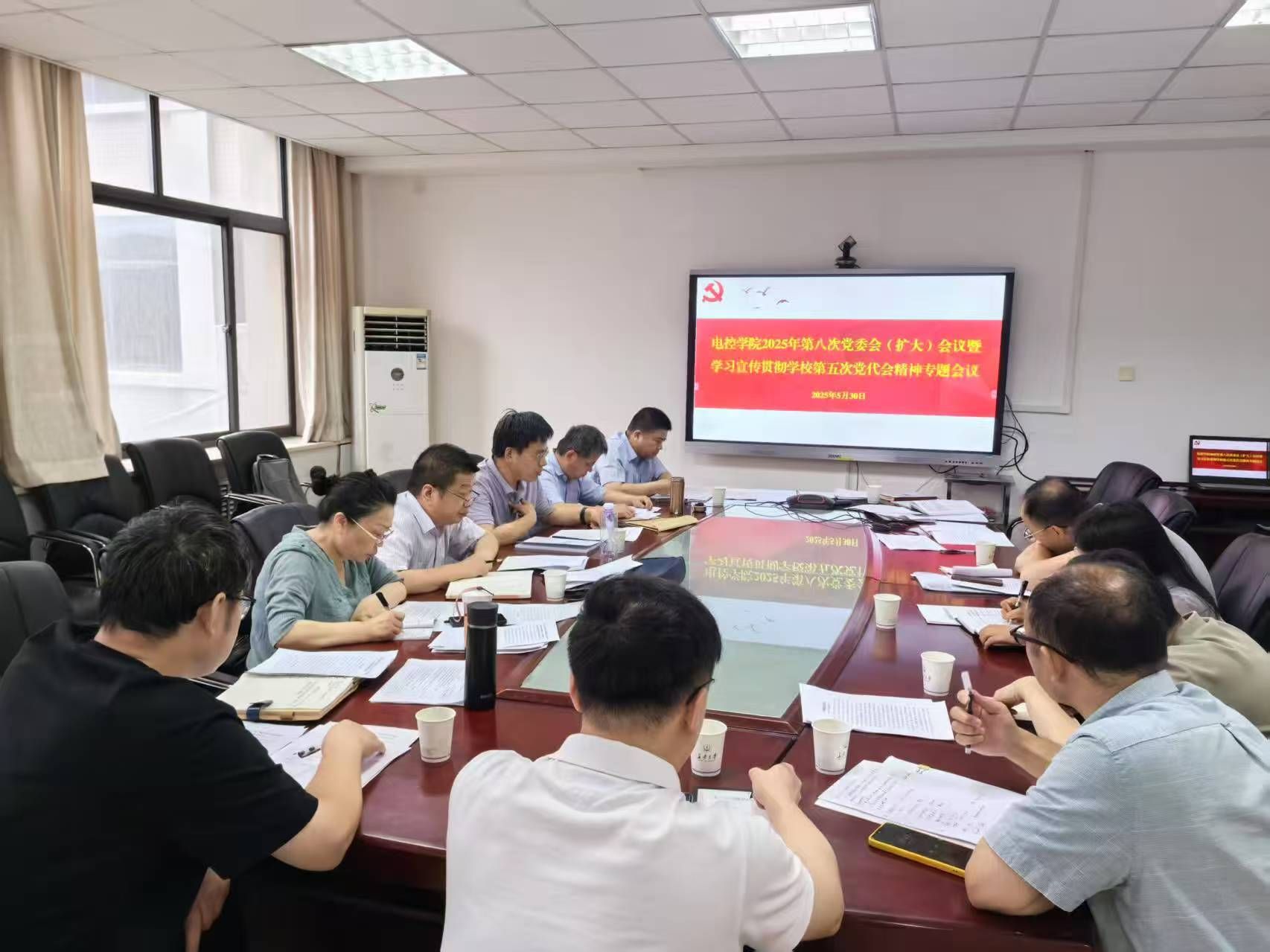5月30日,电子与控制工程学院召开党委会(扩大)会议暨学习宣传贯彻学校第五次党代会精神专题会议。学院领导班子成员、各党支部书记及科级干部参加会议,会议由学院党委书记贺炳彦主持。