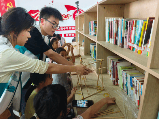 实践队在青山社区开展先进科学技术讲解。实践队员董欣元结合模型教具讲解无人机结构原理及低空经济知识,李世泽开展了3D打印技术科普讲解。队员们组织了筷子结构模型承载力设计比赛,将力学知识融入比赛活动中,激发了学生们对科技的兴趣。