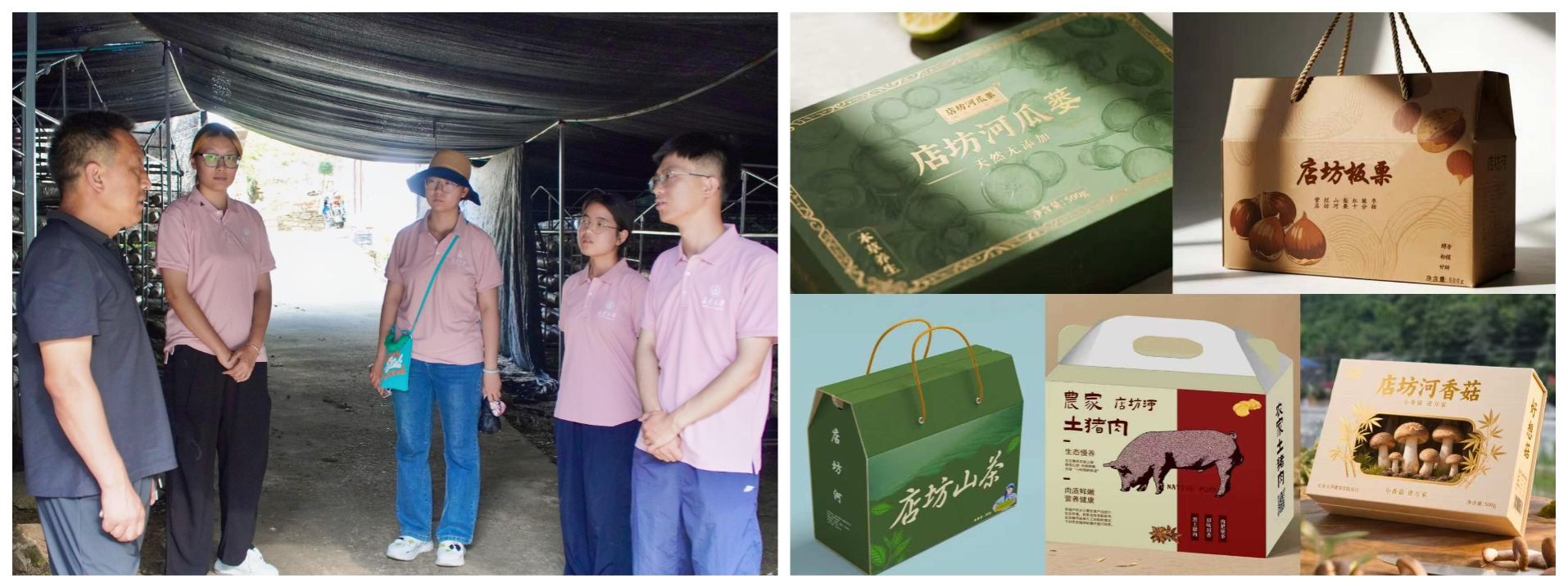 深耕沃土,专业赋能产业兴。实践队走访当地环山板栗带、高山生态茶园和食用菌大棚,发现特色产业虽具规模优势,但品牌辨识度不足。队员们发挥建筑学院专业特长,为“千亩绿茶、万亩板栗、十万头生猪”等五大产业设计系列包装方案,将生态优势转化为市场竞争力,为村民增收提供新思路。