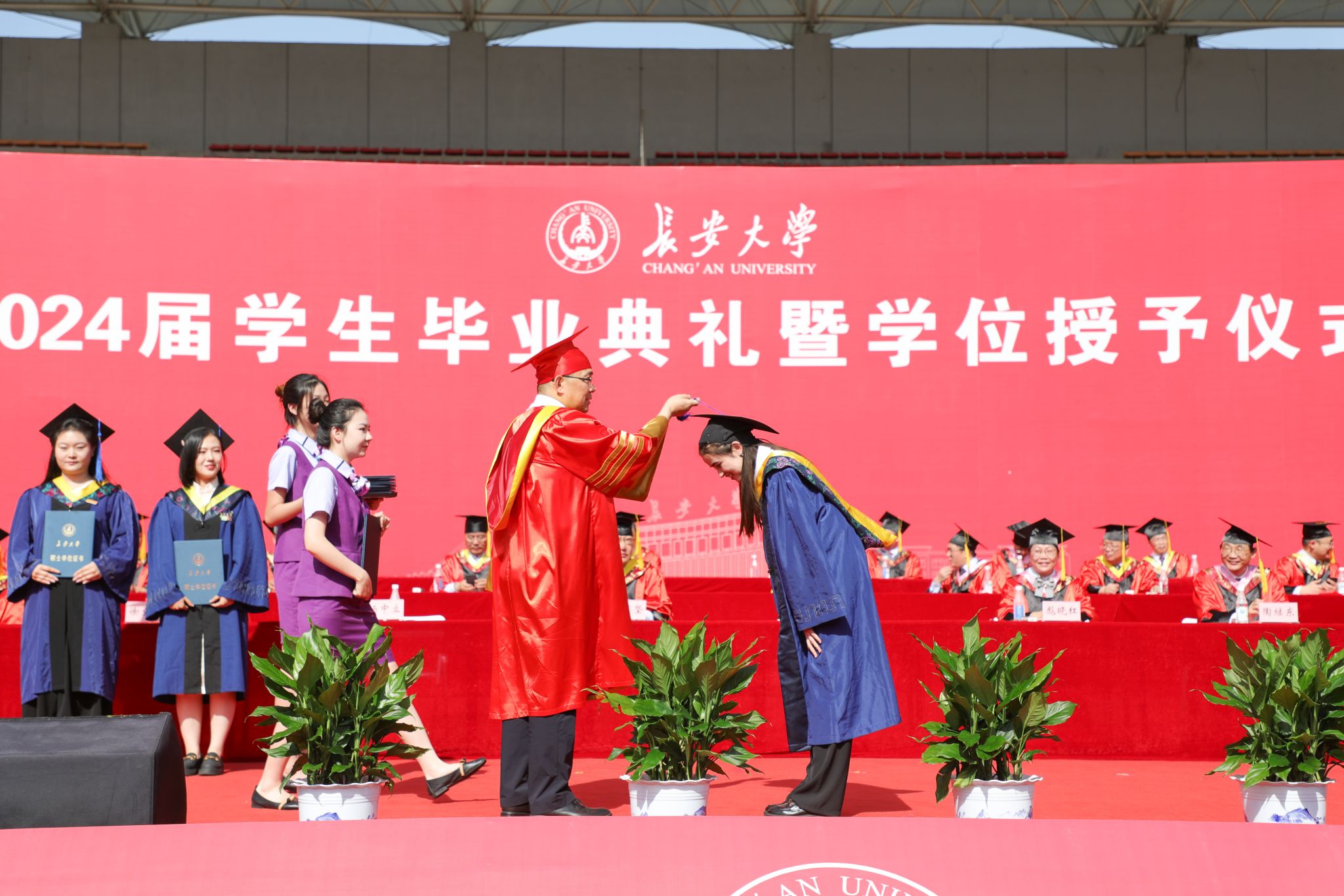 教师代表、公路学院院长汪海年教授发言,希望2024届毕业生不被变化所惧、坚定走好前路的初心使命,不被潮流所惑、坚守走好前路的梦想灯塔,不被未知所困、坚实走好前路的本领根基,争做堪当重任的国之栋梁。
