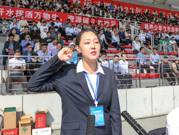 运动员代表黄钧驿、裁判员代表代函芷宣誓