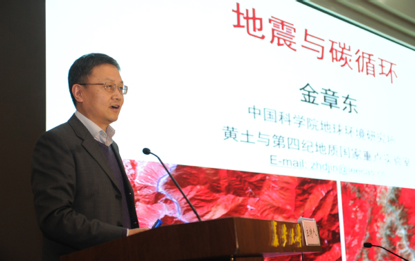 黄土与第四纪地质国家重点实验室主任、中科院地球环境研究所金章东研究员作《地震与碳循环》专题报告