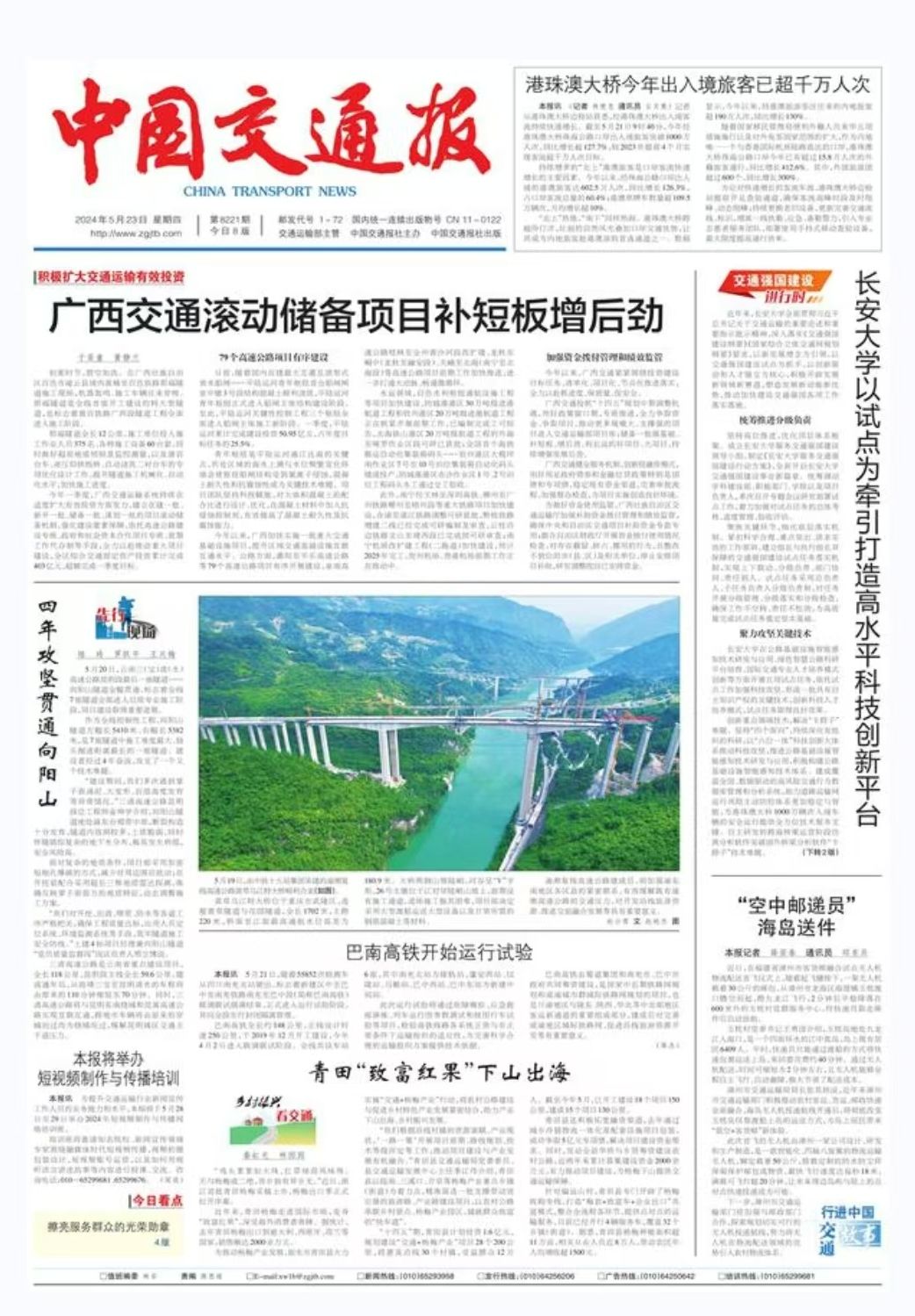 5月23日,《中国交通报》头版以《环球ug登录网站以试点为牵引打造高水平科技创新平台》为题,报道环球ug登录网站交通强国试点建设成果。报道全文转载如下: