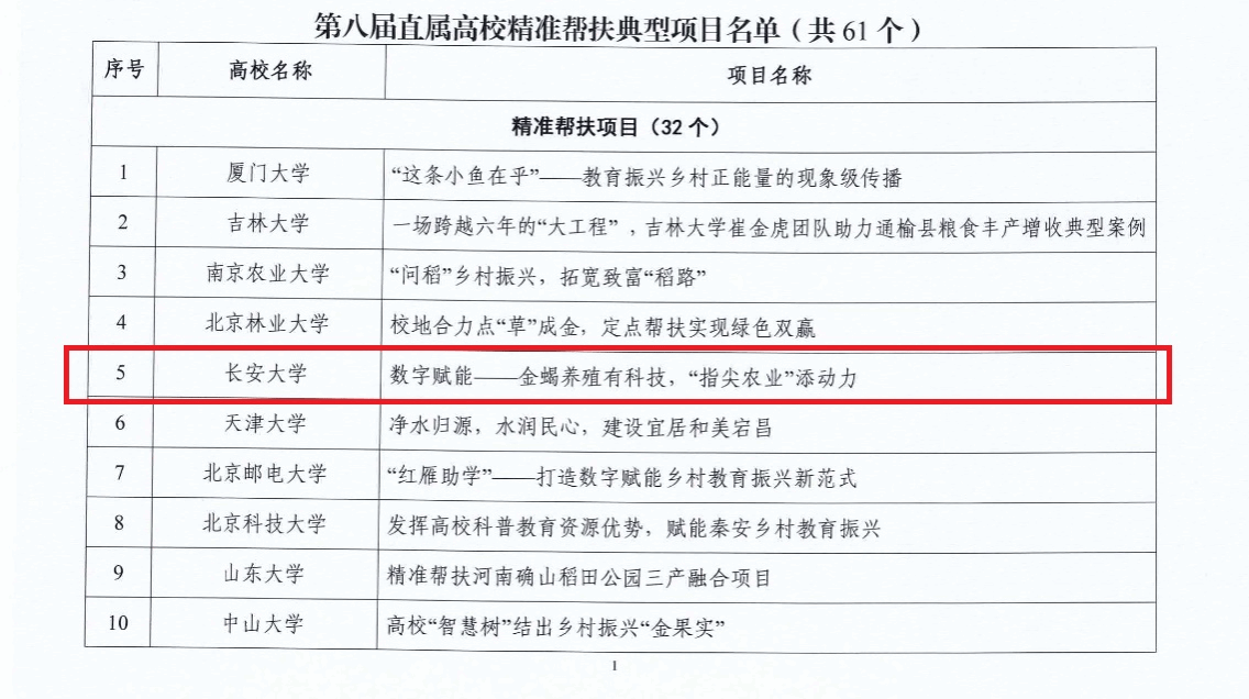 近日,教育部公布了第八届教育部直属高校精准帮扶典型项目推选结果,经过学校申报、现场展示和集中评选,环球ug登录网站申报的精准帮扶项目《数字赋能—金蝎养殖有科技,“指尖农业”添动力》和乡村振兴育人项目《“红绿结合” 双向赋能—环球ug登录网站探索乡村振兴与思政育人协同发展新模式》,入选第八届教育部直属高校精准帮扶典型项目。