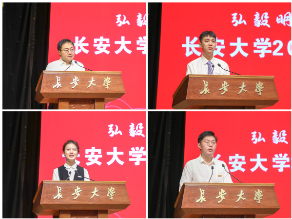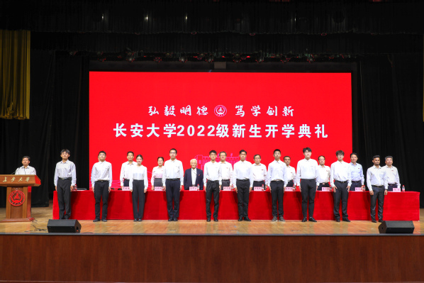 教师代表、信息工程学院王威教授发言,希望全体2022级新生心怀国之大者、厚植家国情怀,勇于承担时代赋予青年的历史责任,在奉献国家、服务社会的过程中实现个人价值。在校学生代表、公路学院2019级本科生王浩然发言,勉励全体2022级新生牢记党的教诲,不负时代重托,不忘初心、砥砺奋斗,收获更加精彩的人生。2022级本科生新生代表侯佳雯、研究生新生代表刘小熊先后发言,表示将秉承“弘毅明德、笃学创新”校训,珍惜韶华、勤勉为学,在实现中华民族伟大复兴的时代洪流中踔厉奋发、勇毅前行。