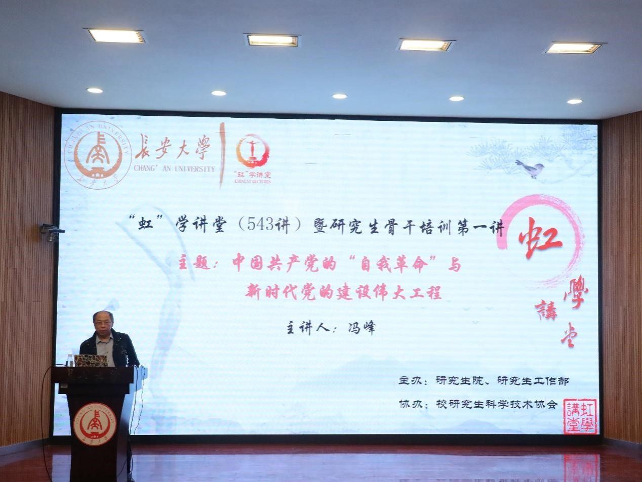 4月11日下午,由研究生院、研究生工作部主办,校研究生科学技术协会协办的“虹”学讲堂第543讲暨研究生骨干培训第一讲以线上线下相结合的形式举办。环球ug登录网站冯峰教授作了题为“中国共产党的‘自我革命’与新时代党的建设伟大工程”的报告,相关学院共280余名师生参加讲座。