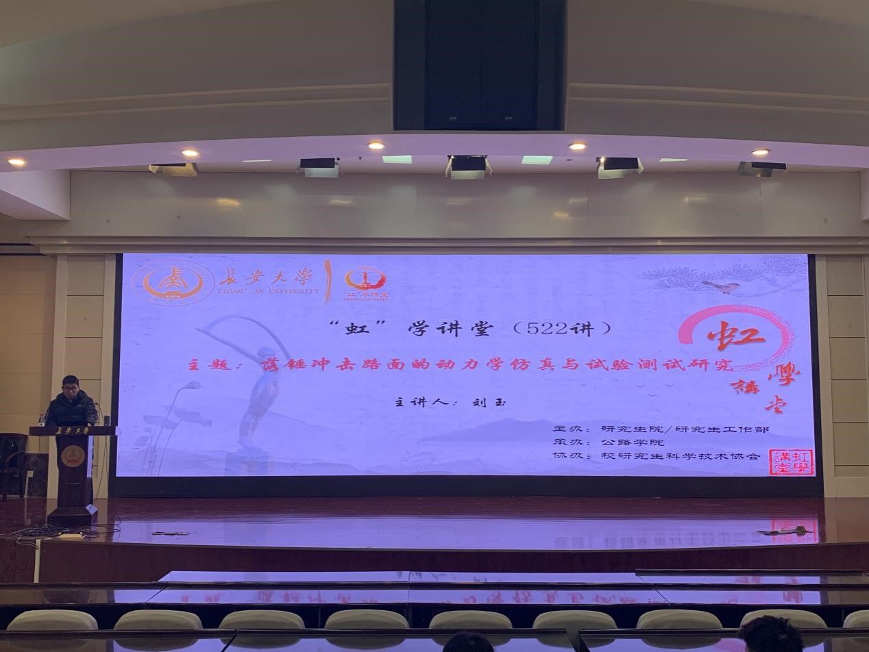 12月5日下午,由研究生院/研究生工作部主办、公路学院承办、校研究生科学技术协会协办的“虹”学讲堂第522讲在南校区北院学术交流中心举行。环球ug登录网站刘玉教授作题为“落锤冲击路面的动力学仿真与试验测试研究”的报告,相关学院共180余名师生参加讲座。