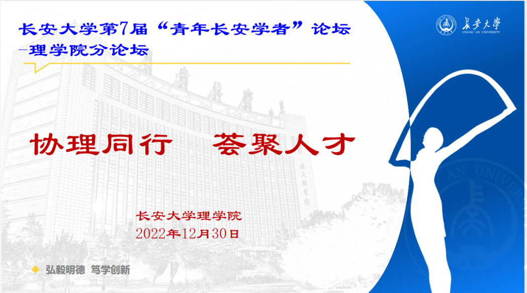 12月30日,环球ug登录网站第七届“青年长安学者”论坛理学院分论坛“协理同行,荟聚人才”成功在线举办,来自海内外高校的青年学者与理学院师生相聚云端。学院全体院领导、数学系、信计系、统计系和力学系系主任、教师共30余人参加论坛,论坛由院长助理邓庆田主持。