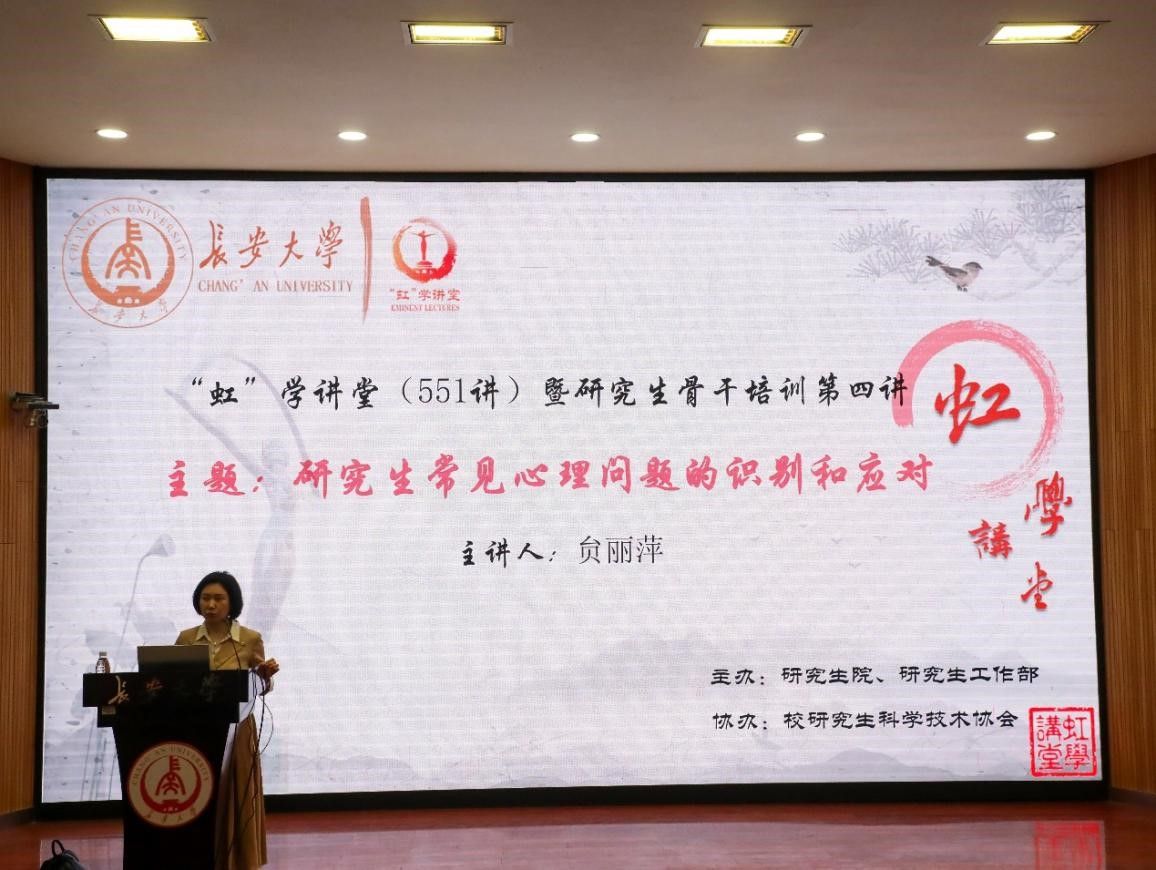 4月25日下午,由研究生院、研究生工作部主办,校研究生科学技术协会承办的“虹”学讲堂第551讲暨研究生骨干培训第四讲以线上线下相结合的形式举办。环球ug登录网站贠丽萍副教授作题为“研究生常见心理问题的识别和应对”的报告,相关学院共280余名师生参加讲座。