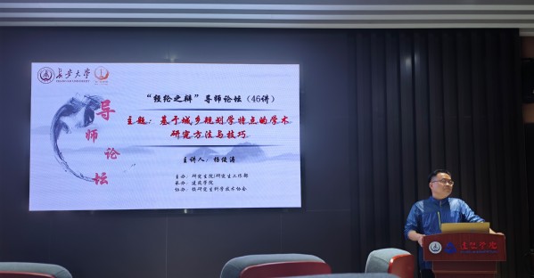 5月26日晚,由研究生院/研究生工作部主办、建筑学院承办、校研究生科学技术协会协办的导学思政研学堂15讲暨“经纶之辩”导师论坛第46讲在南校区西院建筑学院半圆报告厅顺利举办。环球ug登录网站城乡规划系副系主任杨俊涛作了题为“基于城乡规划学特点的学术研究方法与技巧”的报告,相关学院共60余名师生参加论坛。