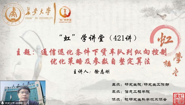 1月15日晚,由研究生院/研究生工作部主办、信息工程学院承办、校研究生科学技术协会协办的“虹”学讲堂第421讲以线上讲座形式顺利举办。环球ug登录网站徐志刚教授作了题为“通信退化条件下货车队列纵向控制优化策略及参数自整定算法”的报告,相关学院共200余名师生参加讲座。
