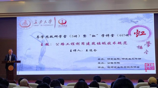 4月14日晚,由研究生院/研究生工作部主办、公路学院承办、校研究生科学技术协会协办的导学思政研学堂5讲暨“虹”学讲堂第447讲在南校区北院学术交流中心顺利举办。环球ug登录网站王选仓教授作了题为“公路工程利用建筑垃圾技术规范”的报告,相关学院共300余名师生参加讲座。