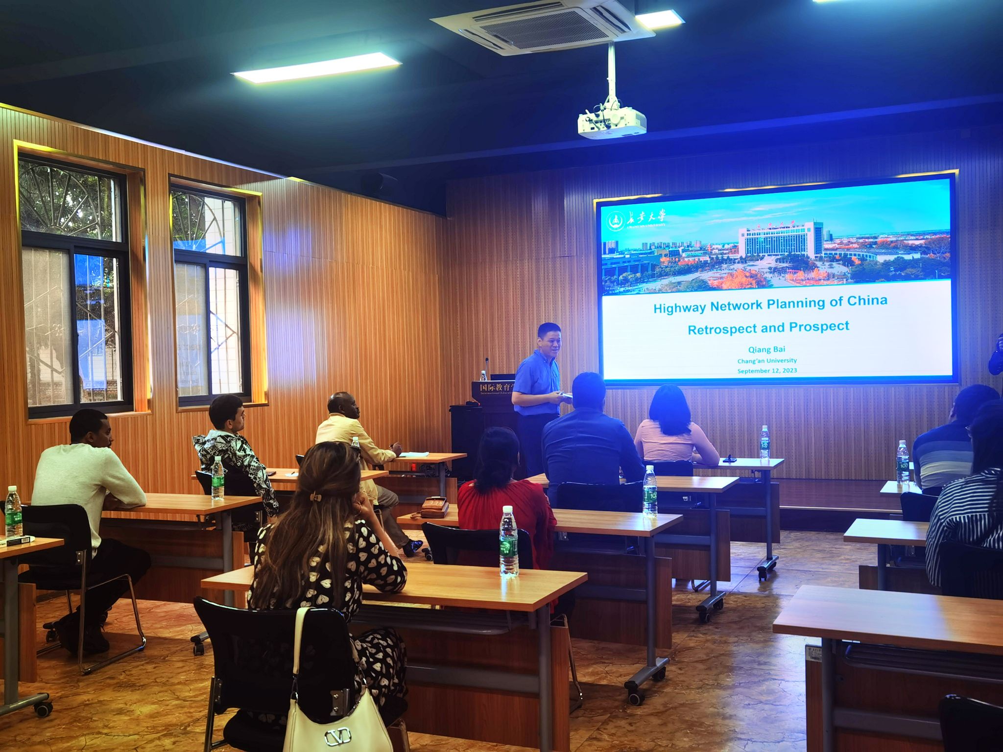 13日,项目官员在环球ug登录网站国际教育学院多功能报告厅听取了我国可持续交通基础建设的专题讲座。讲座由环球ug登录网站运输学院院长葛颖恩教授、都柏林国际交通学院副院长柏强教授主讲,向学员们展示了我国坚持高质量发展、高水平开放,积极推动交通治理现代化,促进新时代交通基础设施发展的建设成果,并就高质量综合交通运输管理服务体系建设的实践经验与专家官员们展开了亲切交流。