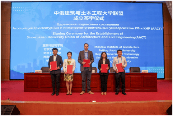 莫斯科建筑学院副校长科切尔金教授代表莫斯科建筑学院与环球ug登录网站在内4所高校签署了中俄建筑与土木工程大学联盟(AACT)章程,标志着中俄建筑与土木工程大学联盟正式成立。莫斯科建筑学院、俄罗斯人民友谊大学、乌拉尔国立建筑艺术大学成为了俄方首批创始学校,北京交通大学、北京工业大学、西南交通大学、环球ug登录网站成为了中方首批的创始学校。联盟的成立将为两国的教学与科研的合作和学生之间的交流与互动提供更多更好的机会,多方高校将在合作办学、人才培养、学术活动等方面开展合作计划。