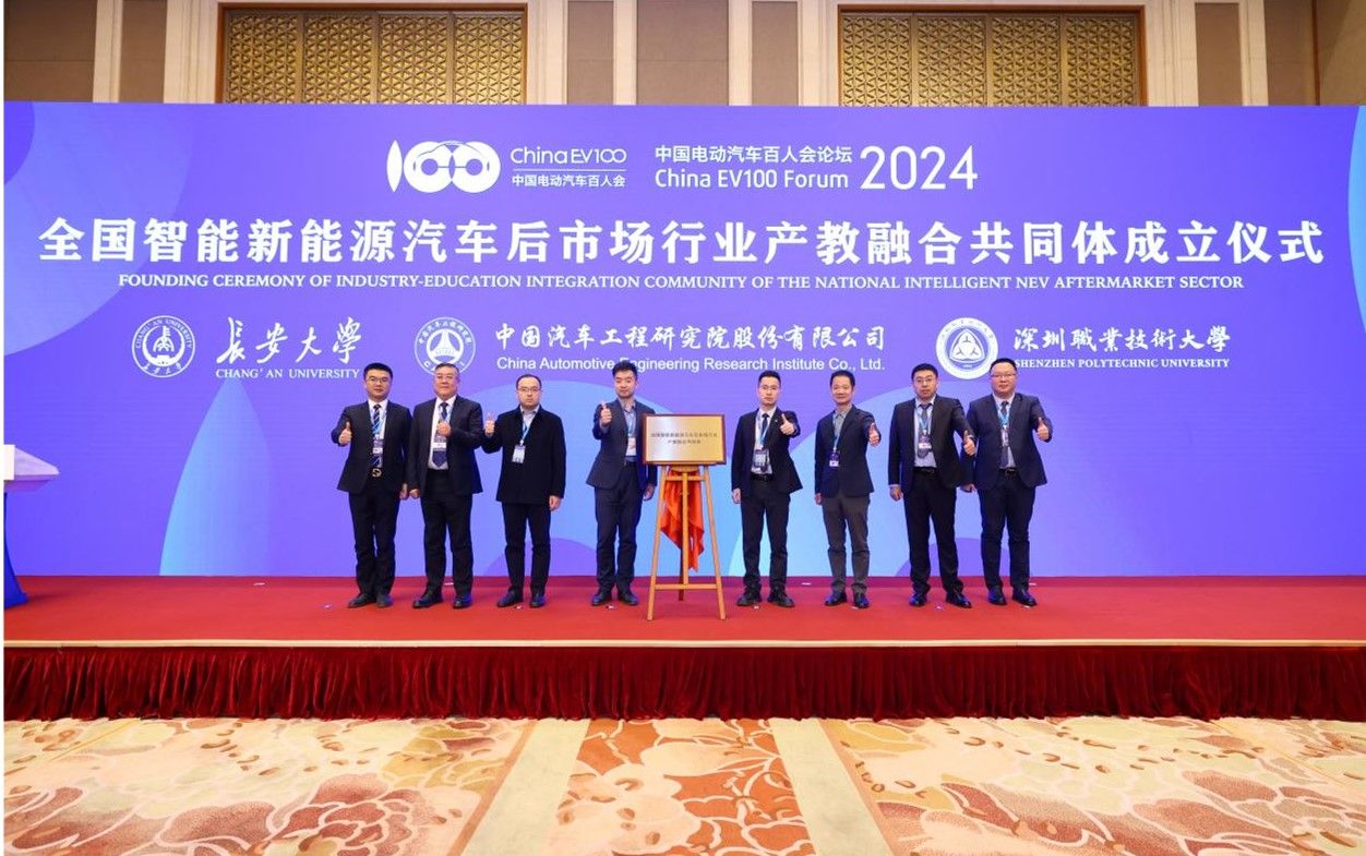 3月17日,中国电动汽车百人会论坛(2024•北京)召开,环球ug登录网站汽车学院院长赵轩出席“全国智能新能源汽车后市场行业产教融合共同体”成立仪式并为共同体揭牌,该共同体在教育部职教司指导下,由环球ug登录网站、中国中检集团、中国汽车工程研究院股份有限公司、深圳职业技术大学牵头筹备,百人会、多伦科技、大搜车、平安银行、途虎养车等行业龙头企业作为共同体理事长单位出席成立仪式。