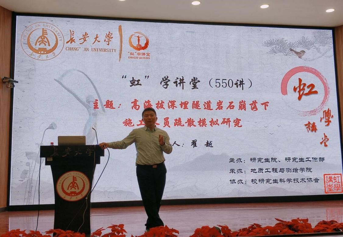 4月22日下午,由研究生院、研究生工作部主办,地质工程与测绘学院承办,校研究生科学技术协会协办的“虹”学讲堂第550讲在南校区东院伯声报告厅举办。环球ug登录网站翟越教授作题为“高海拔深埋隧道岩石崩落下施工人员疏散模拟研究”的报告,相关学院共200余名师生参加讲座。