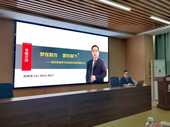 为强化校园创新创业文化,深化教师对大学生创新大赛精神内涵的理解,进一步提升教师指导学生创新创业实践的能力,12月11日下午,教务处、创新创业学院会同外国语学院在外国语学院报告厅举办以“双创竞赛参与及获奖经验专题分享”为主题的专项培训研讨会,邀请中国国际大学生创新大赛国赛评委周郴保作为主讲嘉宾。外国语学院买轶林博士主持报告会,外国语学院副院长马瑛及英日语系全体教师和其他感兴趣的教师参加讲座。