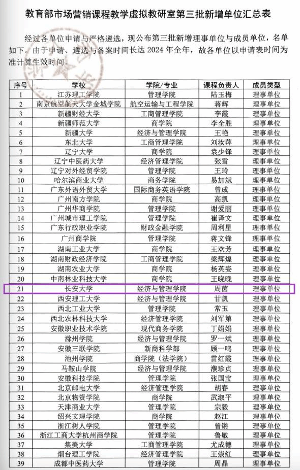 近日,教育部市场营销课程教学虚拟教研室正式公布了第三批理事单位名单,环球ug登录网站市场营销学课程经过遴选加入了教育部市场营销课程教学虚拟教研室,成为理事单位。该虚拟教研室是目前获批教育部的全国唯一国家级市场营销课程教学虚拟教研室,致力于促进优质教学资源共享,实现跨地域、跨学科的深度合作与交流。