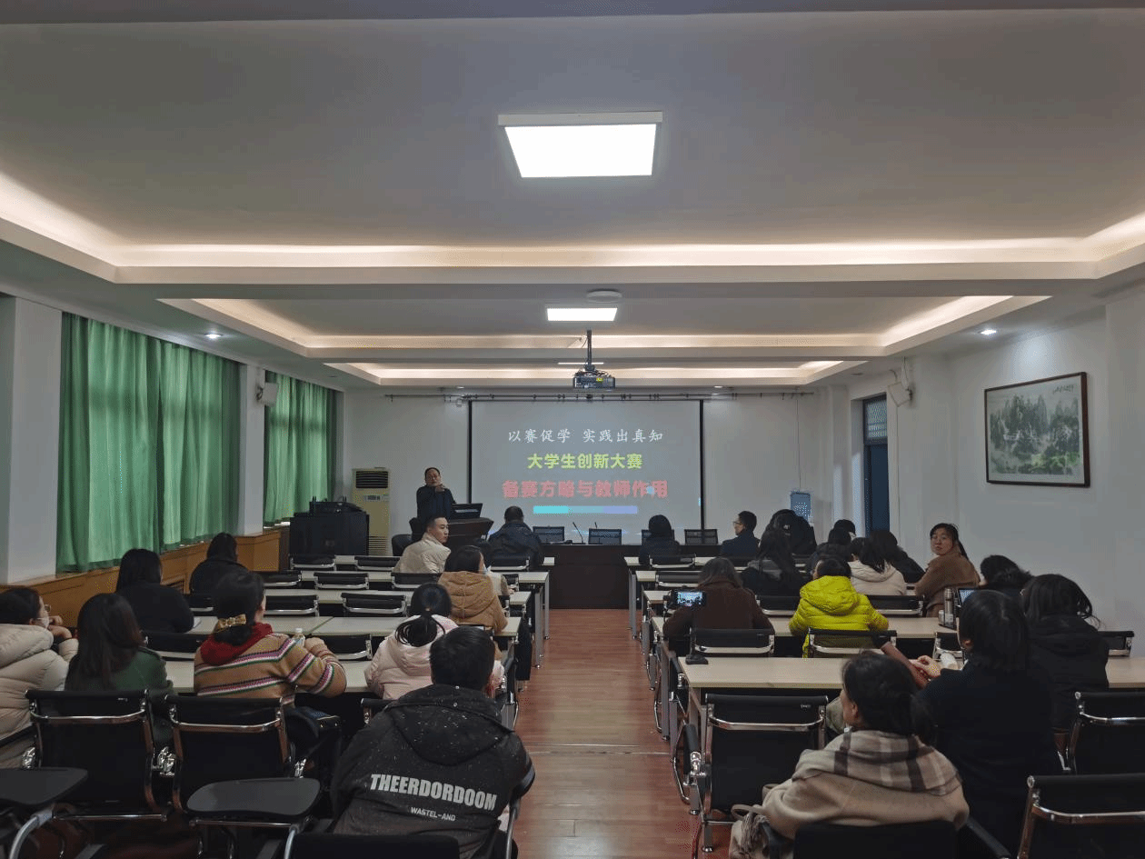 12月18日下午,教务处、创新创业学院会同人文学院在人文学院报告厅举办以“以赛促学 实践出真知—大学生创新大赛备赛方略与指导老师作用发挥”为主题的专项培训研讨会,邀请教育部全国万名优秀创新创业导师张伟担任主讲嘉宾,人文学院副院长常莉主持报告会,人文学院创新创业导师及部分师生参加讲座。
