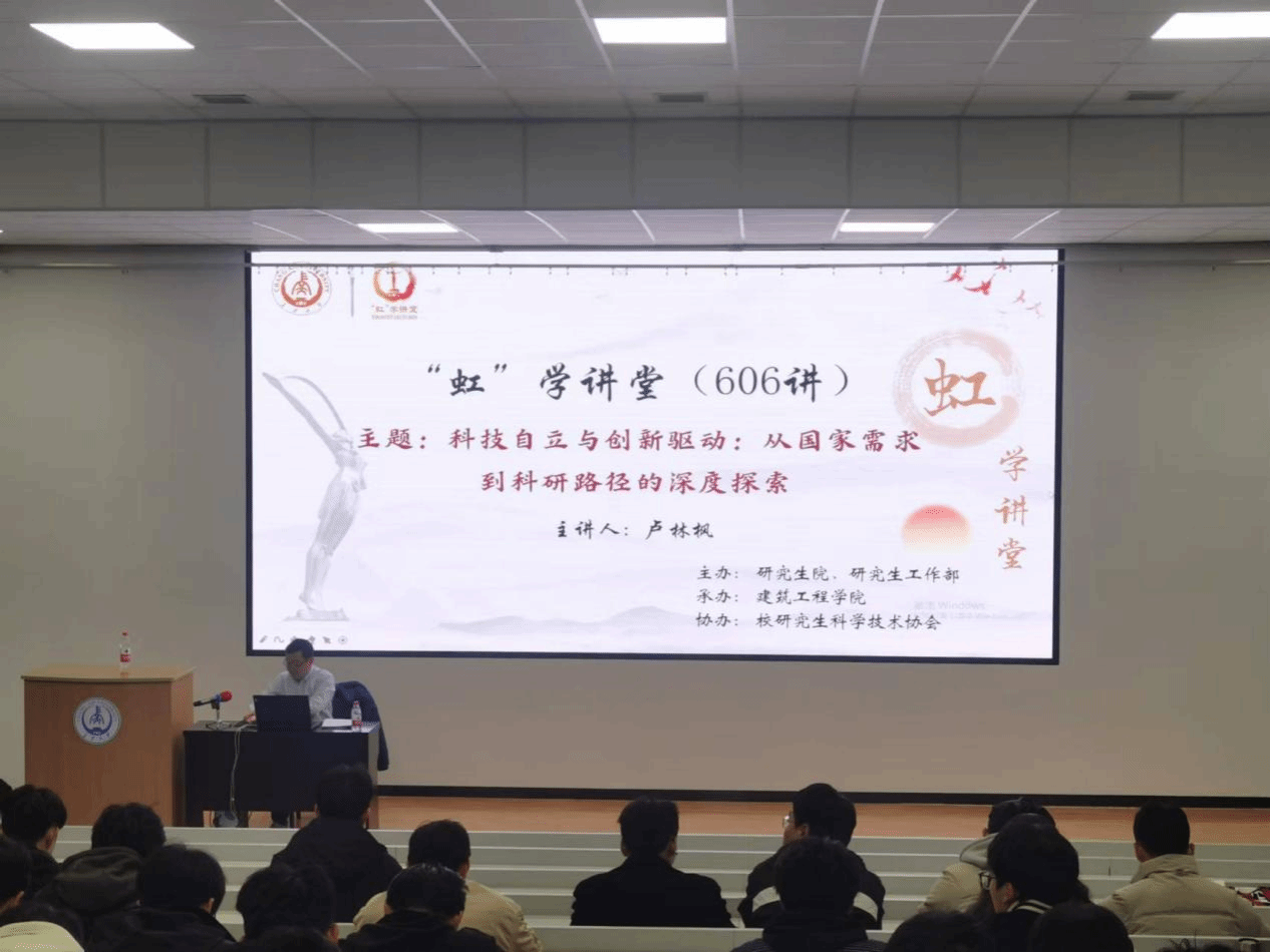 12月3日晚上,由研究生院、研究生工作部主办,建筑工程学院承办,校研究生科学技术协会协办的“虹”学讲堂第606讲在南校区西院综合楼报告厅举办。环球ug登录网站卢林枫教授作题为“科技自立与创新驱动:从国家需求到科研路径的深度探索”的报告,相关学院共180余名师生参加讲座。
