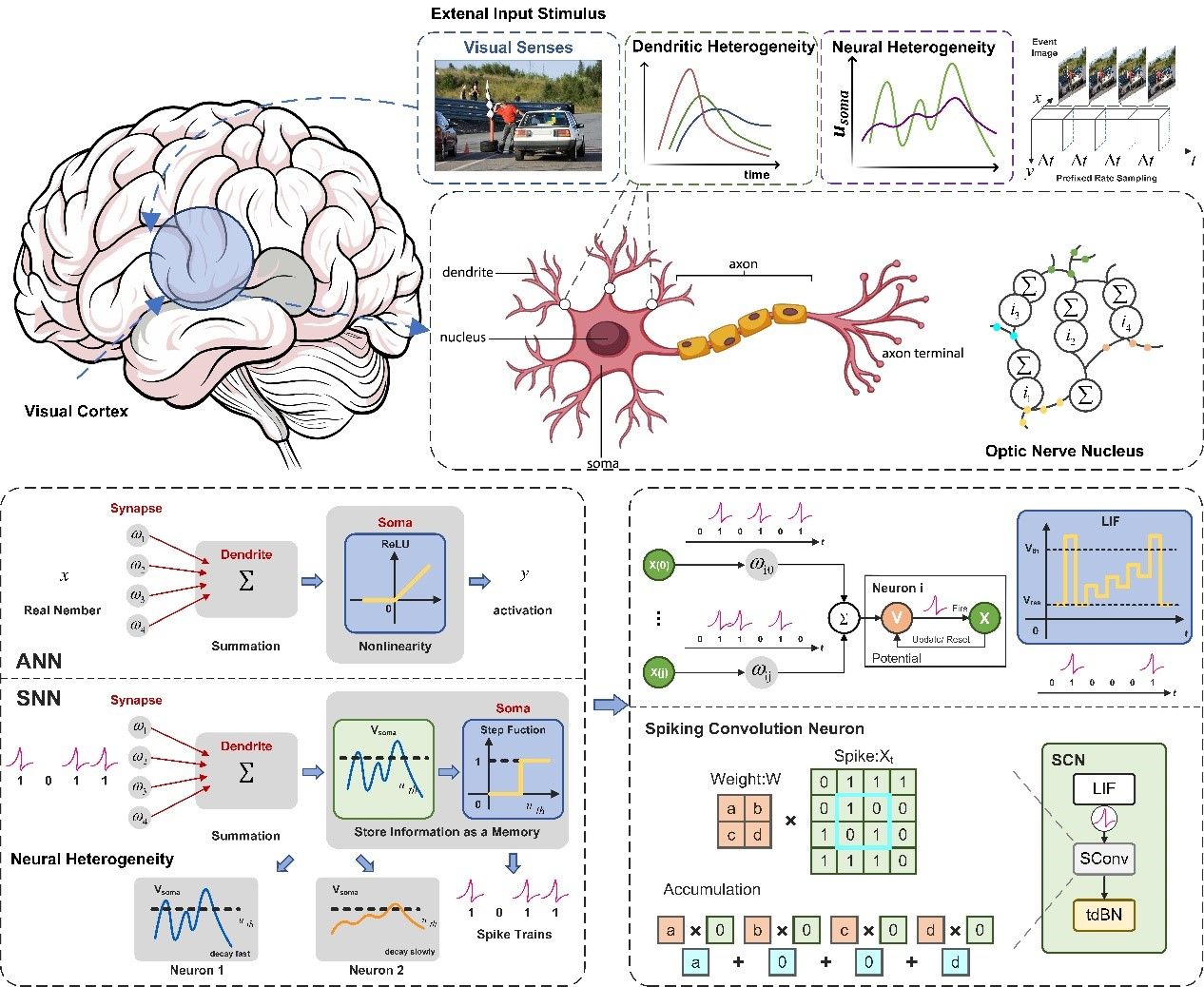 视觉刺激图解与可训练神经元模型SCN示意图